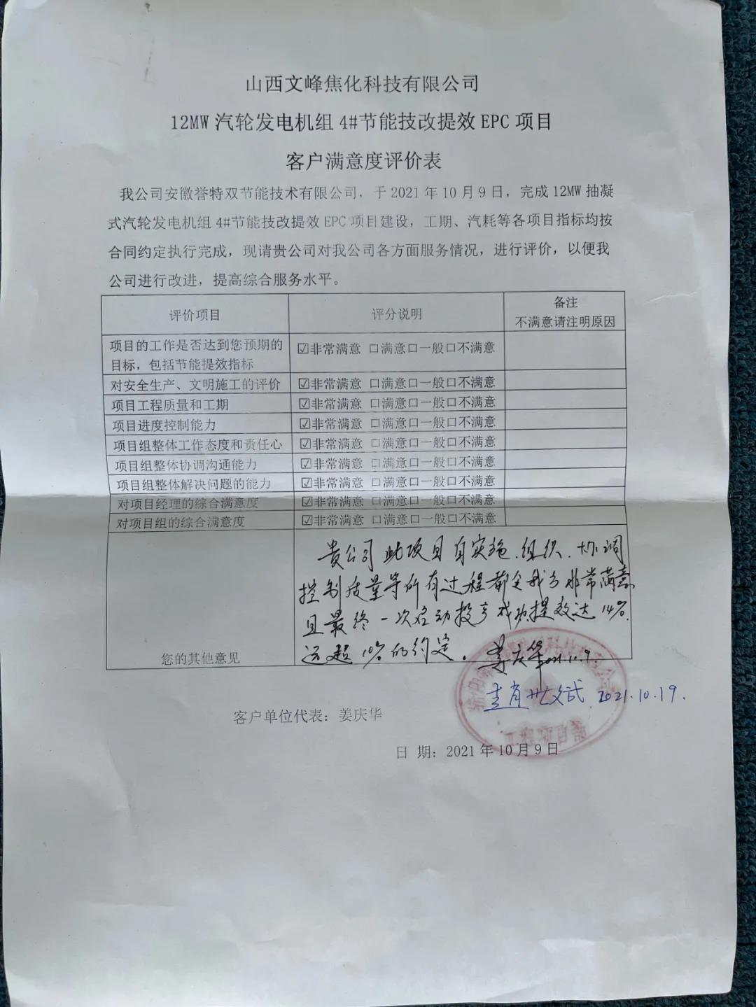 同時,客戶對我公司的項目建設(shè)綜合管理服務(wù)水平給予高度評價,對我公司在項目建設(shè)過程中勇于創(chuàng)新、敢于碰硬的優(yōu)良作風(fēng)給予高度贊揚,在此,我公司誠摯對用能單位、外協(xié)兄弟單位、項目負責(zé)的各位同事致以崇高的敬意和衷心的感謝!