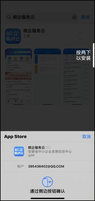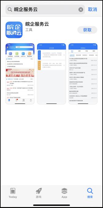 2、蘋果手機用戶在 APP Store 里搜索“皖企服務(wù)云” 并點擊“獲取”下載安裝;