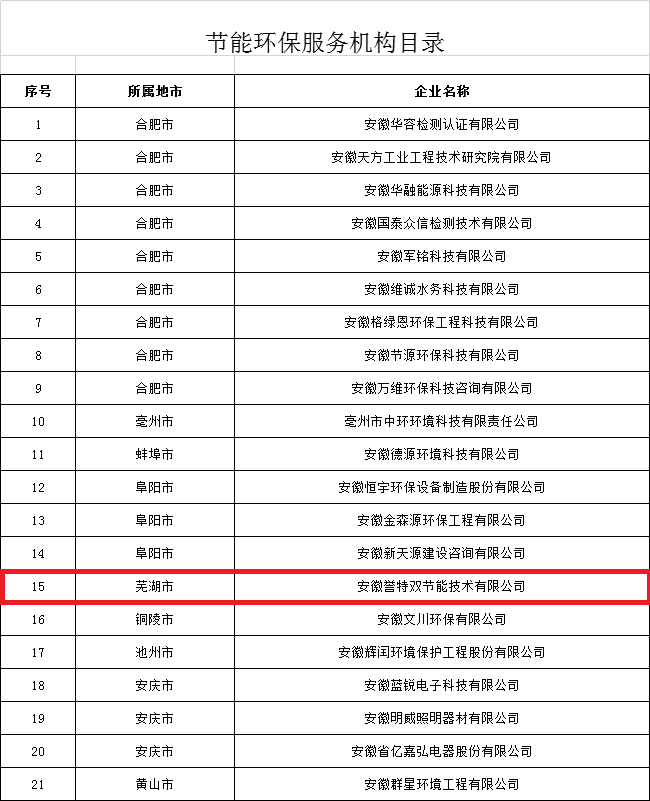 此次我公司雙入選安徽省2019年度全省工業(yè)領(lǐng)域節(jié)能環(huán)保產(chǎn)業(yè)“五個一百”節(jié)能環(huán)保服務(wù)機構(gòu)目錄與節(jié)能環(huán)保先進技術(shù)目錄,標志著我公司工業(yè)節(jié)能技術(shù)進一步獲得省級認可和支持。即是榮譽,更是鞭策,公司全員決心以高昂的斗志,團結(jié)一致、努力拼搏、再創(chuàng)新高、回饋各方!