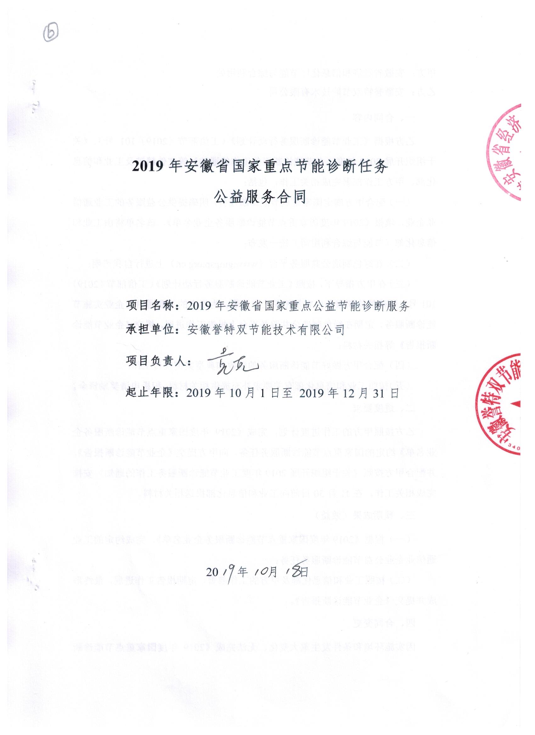 簽約2019年安徽省國家重點節(jié)能診斷任務(wù)公益服務(wù)合同,不僅代表著國家工業(yè)和信息化部、安徽省經(jīng)信廳對我公司服務(wù)能力、技術(shù)能力的認(rèn)可,同時也標(biāo)志著我司正式躋身工業(yè)節(jié)能服務(wù)國家隊序列,為開拓全國工業(yè)節(jié)能診斷服務(wù)市場奠定基礎(chǔ)。