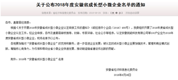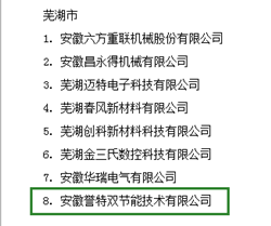 2018年8月29日,安徽省經(jīng)信委通過官網(wǎng)發(fā)布——2018年度安徽省成長型小微企業(yè)認定名單,我公司安徽譽特雙節(jié)能技術(shù)有限公司喜獲認定,為蕪湖市僅有的八家上榜企業(yè)之一,也是蕪湖國家級經(jīng)濟技術(shù)開發(fā)區(qū)和蕪湖高新技術(shù)創(chuàng)業(yè)園區(qū)唯一的入選企業(yè),含金量頗高。