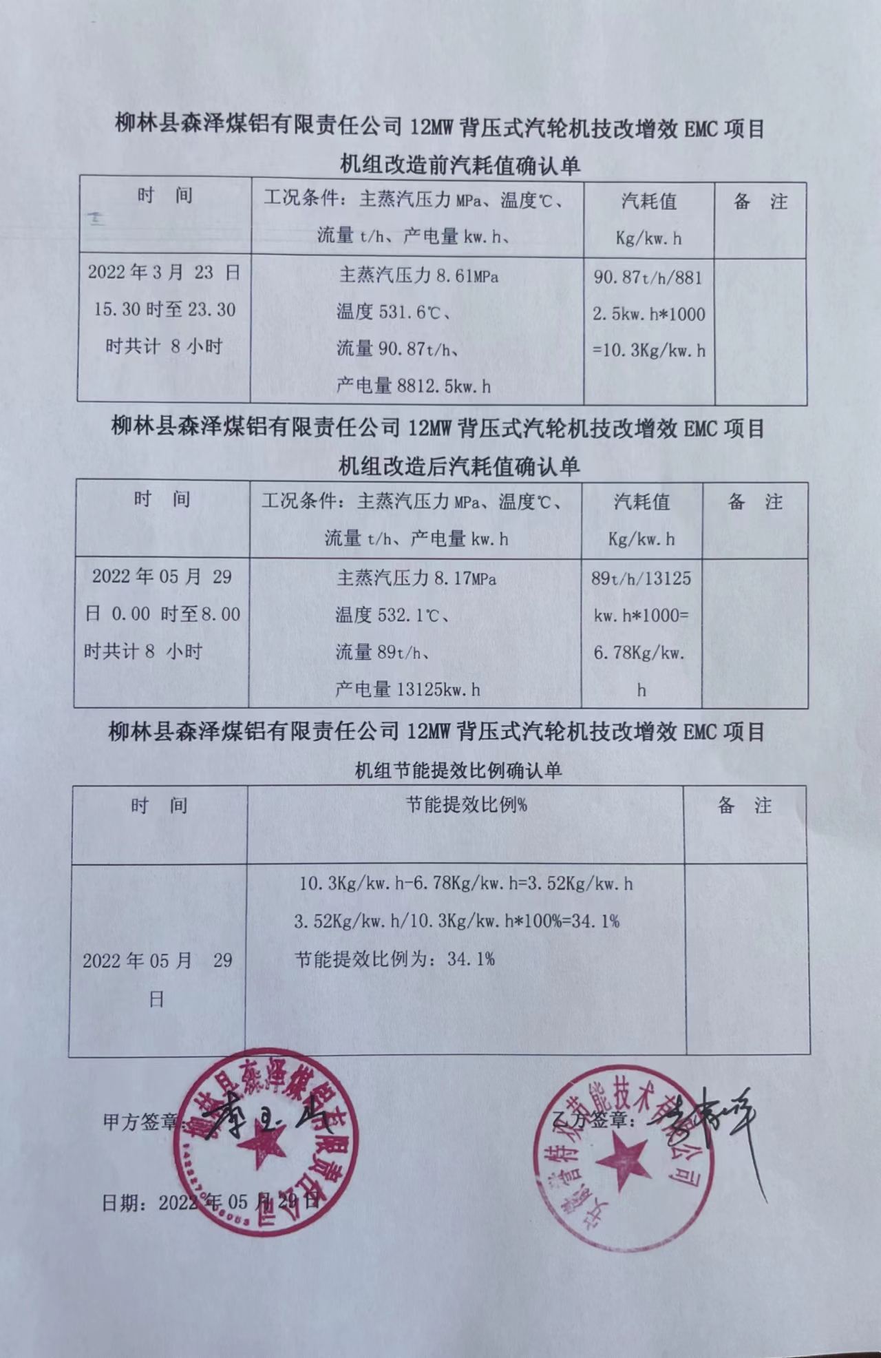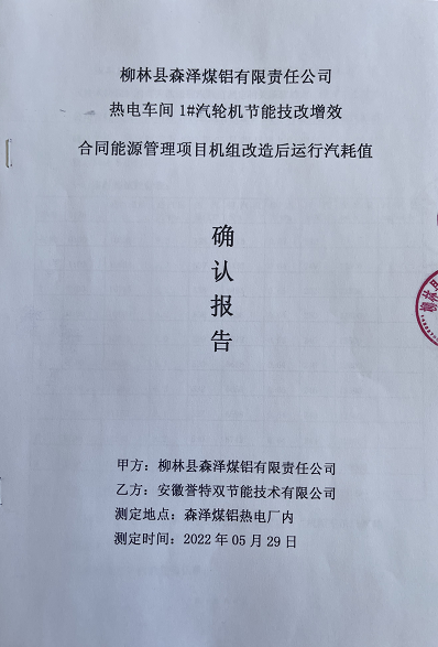 我公司以合同能源管理模式,全額投資實(shí)施的山西森澤煤鋁集團(tuán)12MW背壓1#機(jī)組節(jié)能技改提效合同能源管理項(xiàng)目,自2022年5月19日開機(jī)沖轉(zhuǎn)成功并網(wǎng)以來,機(jī)組各項(xiàng)參數(shù)指標(biāo)均正常、穩(wěn)定。項(xiàng)目于5月29日順利通過工程驗(yàn)收,實(shí)測(cè)同等工況條件下,節(jié)能提效比例達(dá)34.1%,遠(yuǎn)超合同約定的30.7%考核指標(biāo)。