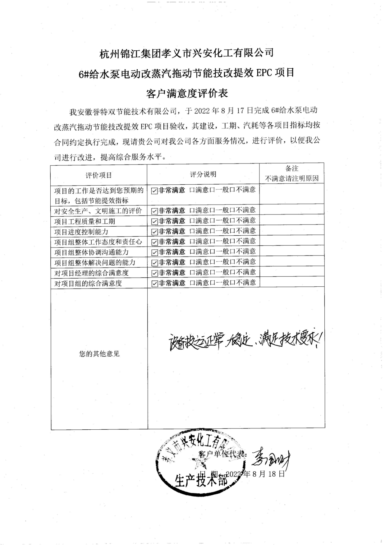 近期,我公司以EPC施工總包方式建設(shè)的中國五百強(qiáng)企業(yè)——孝義市興安化工有限公司、開曼(陜縣)能源綜合利用有限公司,兩臺(tái)2.1MW蒸汽拖動(dòng)給水泵電改汽節(jié)能技改項(xiàng)目正式通過工程驗(yàn)收。