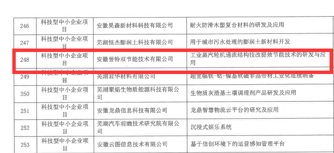 近日,我公司項(xiàng)目——工業(yè)蒸汽輪機(jī)通流結(jié)構(gòu)技改提效節(jié)能技術(shù)的研發(fā)與應(yīng)用,在蕪湖市科學(xué)技術(shù)局科技項(xiàng)目成功立項(xiàng)!