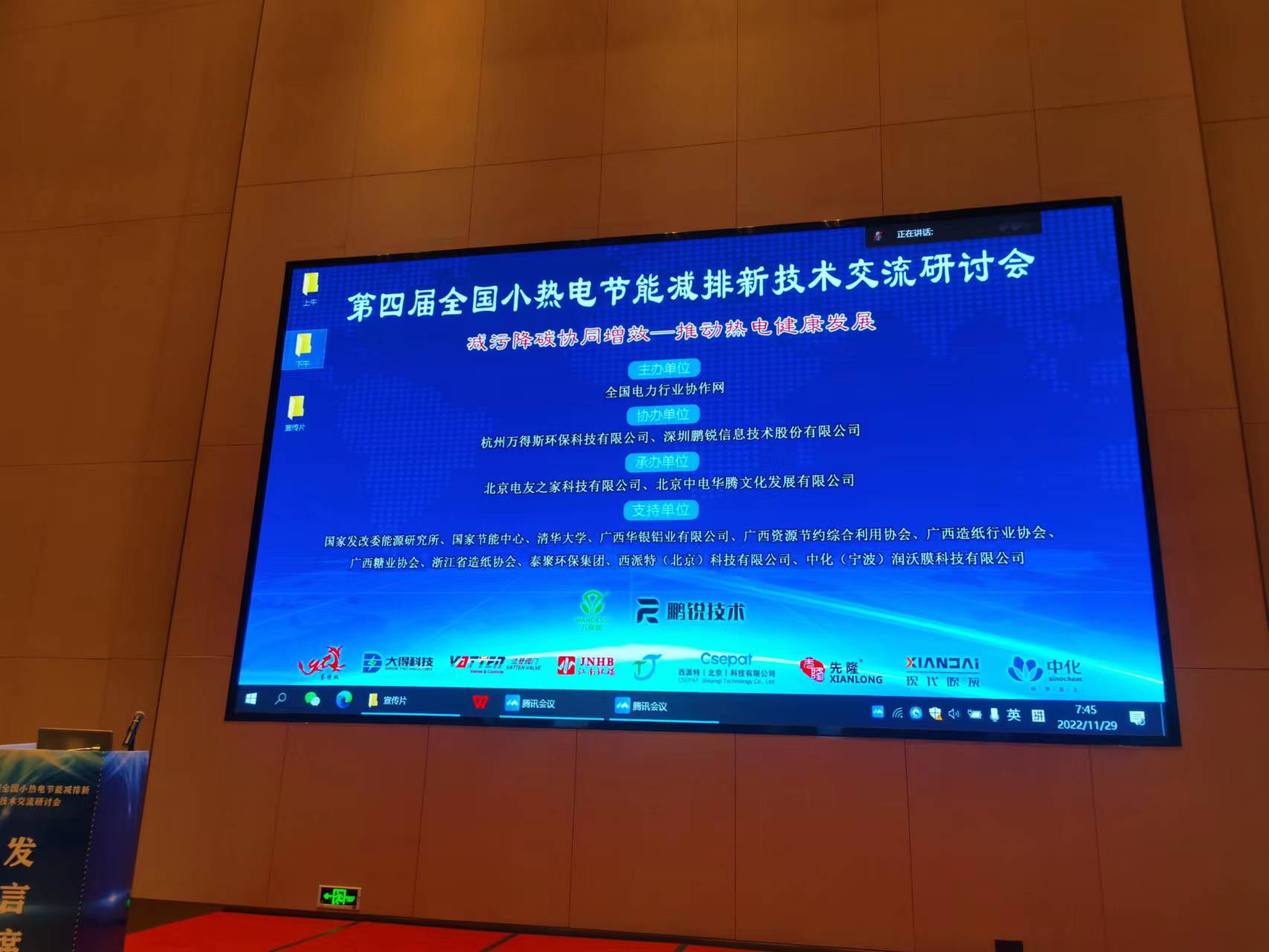 2022年11月29日,由全國電力行業(yè)協(xié)會主辦的——第四屆全國小熱電節(jié)能減排新技術(shù)交流研討會成功在廣西省百色市順利召開,我公司受邀參加并做主題匯報演講。