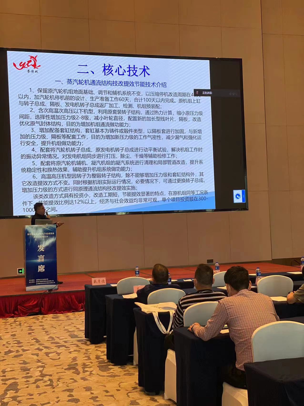 現(xiàn)場來自全國各地的專家學者、協(xié)會領(lǐng)導、參會企業(yè)等共同召開此次交流會。我公司作為特約嘉賓受邀參加本次交流研討會,并由節(jié)能事業(yè)部長湯偉做《工業(yè)蒸汽輪機通流結(jié)構(gòu)技改提效及余熱余壓資源綜合利用節(jié)能技術(shù)的研發(fā)與應(yīng)用》專題報告。