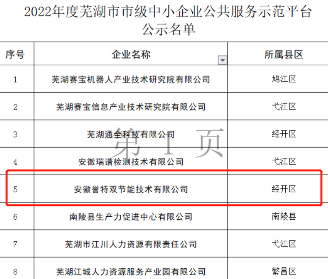近日蕪湖市經(jīng)濟(jì)和信息化局發(fā)布《2022年度蕪湖市市級中小企業(yè)公共服務(wù)示范平臺擬認(rèn)定名單公示》,我公司再次被認(rèn)定為2022年度蕪湖市中小企業(yè)公共服務(wù)示范平臺。本次全市共計評選出8家中小企業(yè)公共服務(wù)示范平臺,其中經(jīng)開區(qū)2家,我公司榮列榜單。