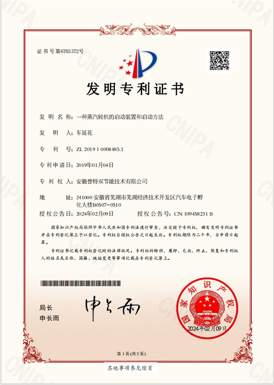 近期,我公司又一項(xiàng)發(fā)明專利獲得國家知識(shí)產(chǎn)權(quán)局授權(quán),此項(xiàng)專利名稱為“一種蒸汽輪機(jī)的啟動(dòng)裝置和啟動(dòng)方法”,專利號(hào):ZL 2019 1 0008 485.1 。