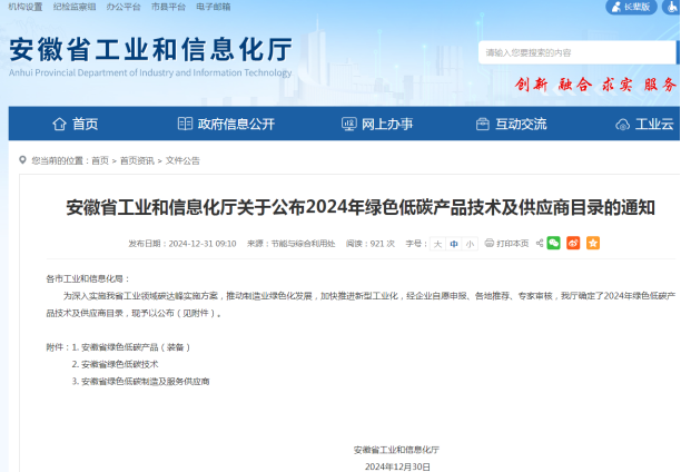 公司三項目入選安徽省2024年綠色低碳產(chǎn)品技術(shù)及供應商目錄