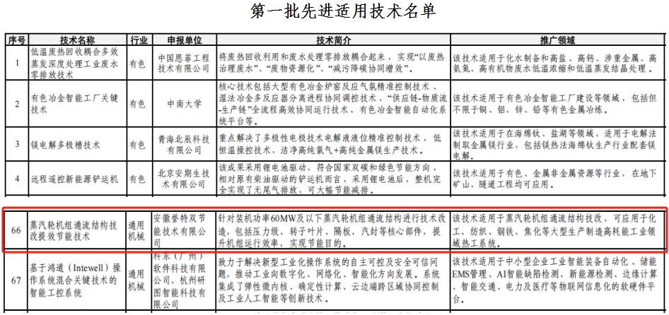 近日,工業(yè)和信息化部在全國范圍內(nèi)開展先進(jìn)適用技術(shù)(第一批)遴選工作,經(jīng)自主申報、形式審查、專家評審等程序,最終擇優(yōu)評選出111項(xiàng)技術(shù)列入工信部第一批先進(jìn)適用技術(shù)目錄,我公司“蒸汽輪機(jī)組通流結(jié)構(gòu)技改提效節(jié)能技術(shù)”榮列榜單,在此表示熱烈祝賀。