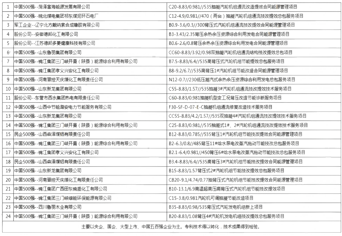 公司創(chuàng)造性的將核心技術(shù)與合同能源管理商務(wù)模式進行有機整合,并成功在安徽、山東、河南、山西、江蘇等地建設(shè)多個標(biāo)桿業(yè)績,其中,在遼寧北方戴納索合成橡膠、菏澤富海集團、山東魯麗集團、山東新龍集團、德邦化工集團、山西晉控集團、皖北煤電集團、杭州錦江集團、中國節(jié)能集團、森澤煤鋁集團等大型國有、全球五百強、上市企業(yè)落地實施,具有顯著的示范作用。